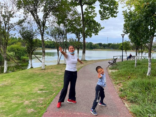 妈妈开心的手舞足蹈了