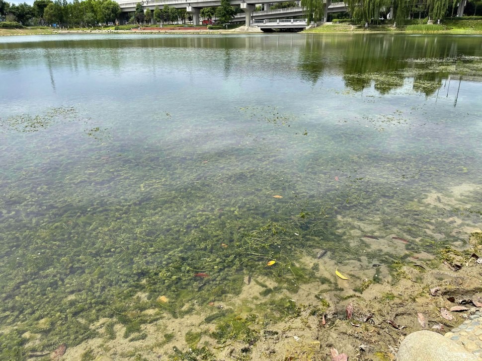 湖里的水草太丰富了,被工人打捞起来了