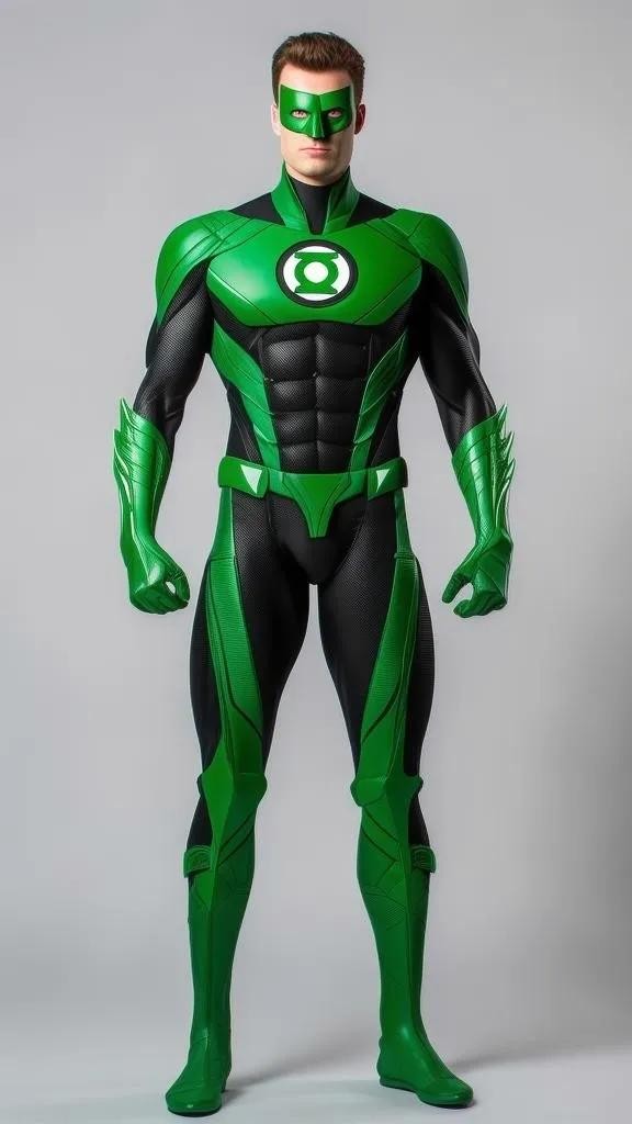 绿灯侠,哈尔·乔丹,宇宙守护者,佩戴绿戒指,凭借意志力创造能量实体,勇敢无畏的太空警察。