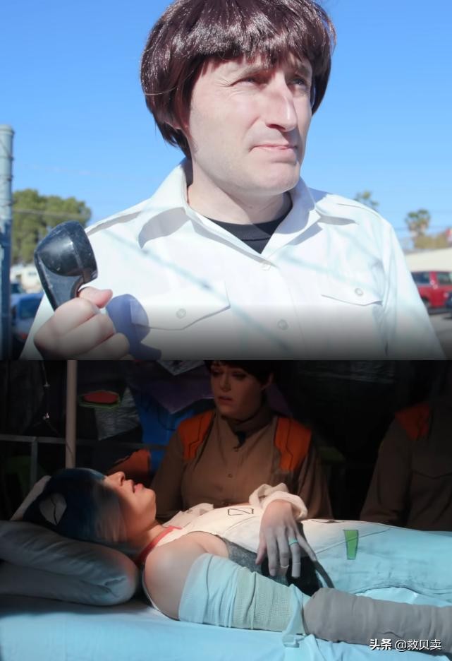 所谓的“EVA驾驶舱”只是一个简易的圆筒,为了达到搞笑的目的,还向“碇真嗣”喷了一大桶的冷水。不过演员非常卖力,一边模仿战斗时的震动一边嘴里亲自配音,小编也是醉了。