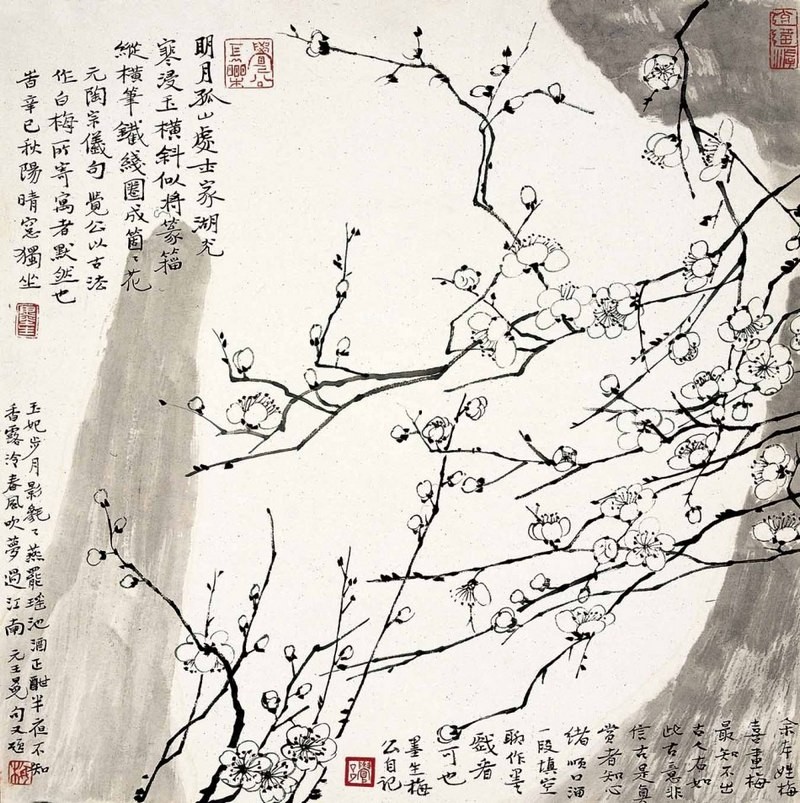 梅墨生是一位从事中国画、书法艺术创作和近现代艺术研究与评论的“三栖型”人物。童中熹先生评价说:墨生擅山水、花鸟。所作静、雅、遒、空灵,而大都出之以“拙”,以其书、画同法故也。其法,山水盖得力于八大、石溪、龚贤、渐江,近师黄宾虹、李可染;花鸟则综合八大、缶翁、齐白石、潘天寿、李苦禅诸大家。然章法、结体,虚虚实实,不同凡响。《二楞图》、《青山雨霁图》之幻化,《依样》之韵律,《秋山图团扇》及《山深有古寺》繁而不实,《深山云烟平》满不迫塞,《夏山图》之苍茫清空,《云山几重》之推宕,或经意,或“不经意”,皆别出心裁,非揣摩有得者不能为。墨生的画,属传统文人画。
