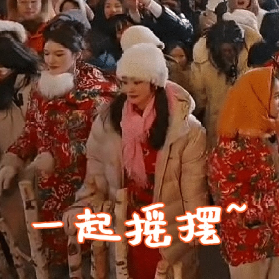 两人穿着大花袄,摇摇晃晃的样子简直太可爱了!