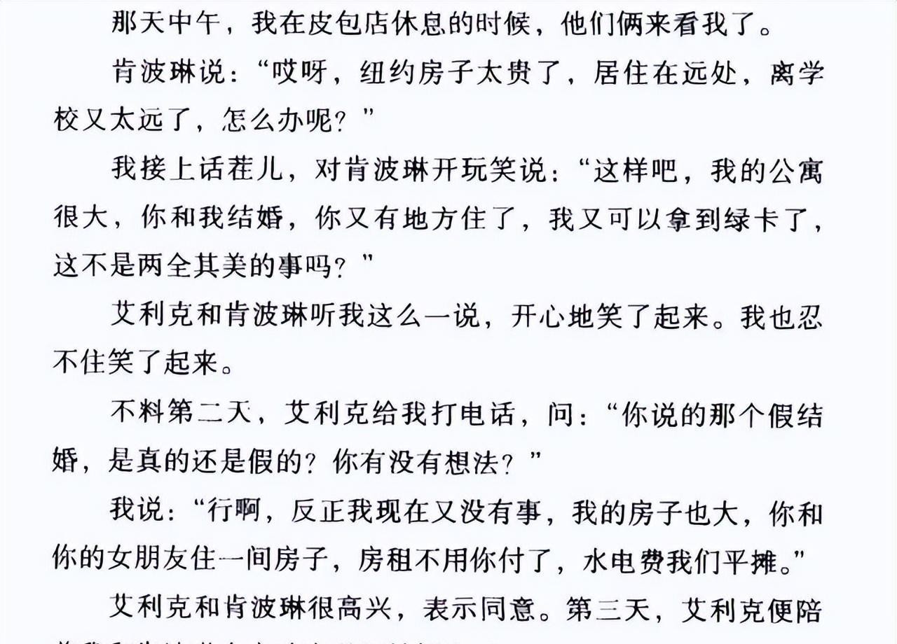 她想要住上免费的公寓,金星则想走捷径,快速拿到美国绿卡。双方各取所需,一拍即合,当即去领证了。更奇葩的是,这段婚姻的见证人,还是肯波琳的男友艾利克。在他的见证下,两人还完成了新人的拥抱和亲吻。直到多年以后,新娘怀孕,新郎完成变性手术,才结束了这段画风奇特的婚姻。