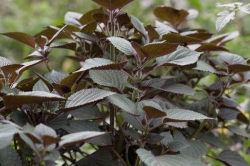 紫苏,味道辛、香,炒田螺、泥鳅用的最多,味道非常香,也可以用于牛羊肉。