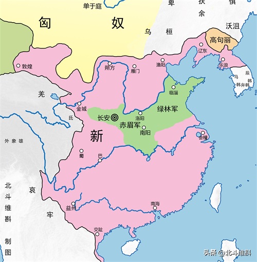 西汉末期,社会矛盾尖锐,走向了灭亡。外戚王莽掌权后,于公元9年改国号为“新”,试图通过一系列复古的改革措施来挽救危机,不过这些政策大多数都无法推行,最终引发了赤眉、绿林起义,天下大乱。王莽的边疆政策也出现了失误,由于他歧视边疆民族,导致各民族离心离德,纷纷脱离中原的控制。前37年,“卒本扶余”立国。公元14年,“卒本扶余”攻占了高句丽县,从此就以“高句丽”作为国号。