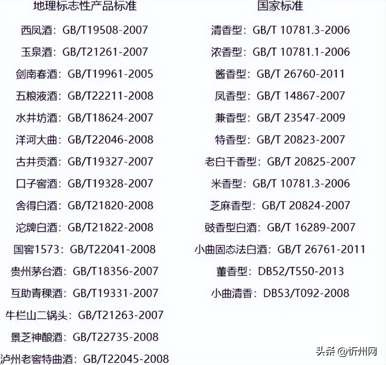 白酒执行标准的种类