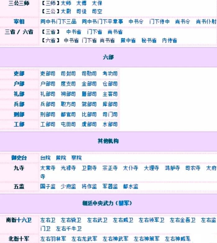 中央各类官职