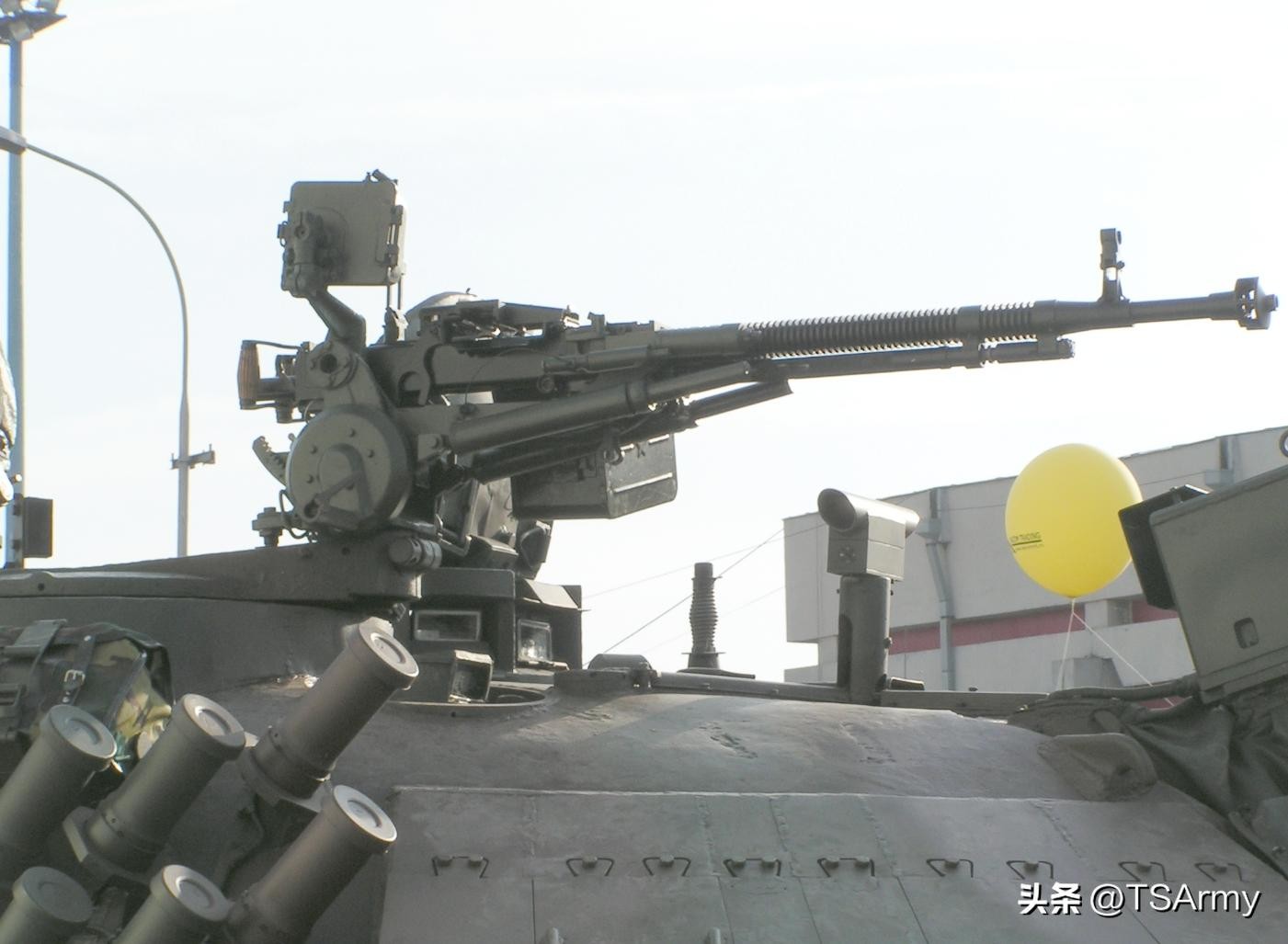 同样是在五十年代,随着苏联的T-54/55坦克问世,DShK还衍生出坦克专用的高射版本,为了增强火力,为其配备了300发容量的弹药箱。