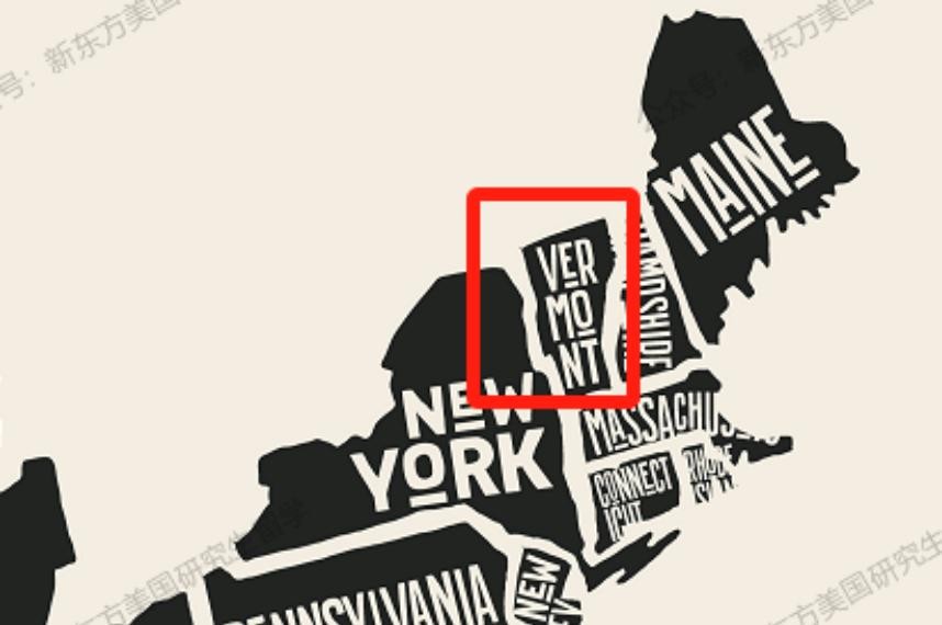 图中红色框区域为佛蒙特州位置