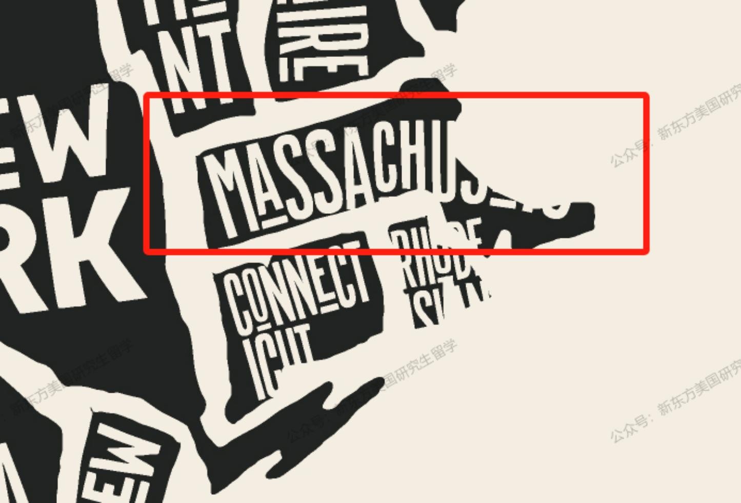 图中红色框区域为马萨诸塞州位置