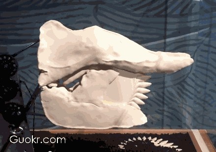 图注:旋齿鲨牙齿咬合动图,图片来自果壳