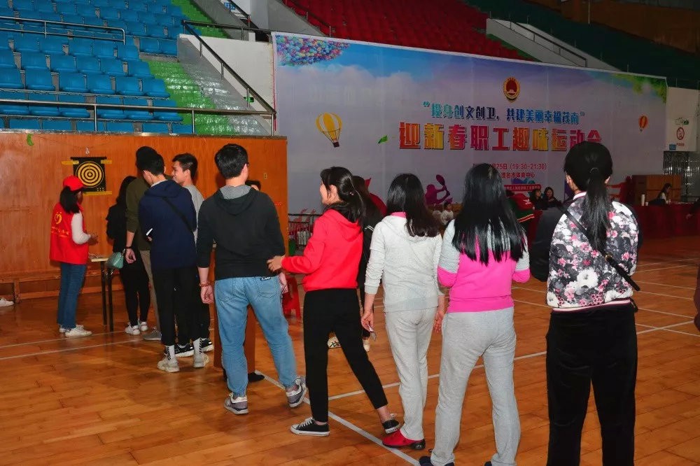 游戏规则:参与者站在红线外面投掷飞镖,每人投掷5次,获得30环以上即可。