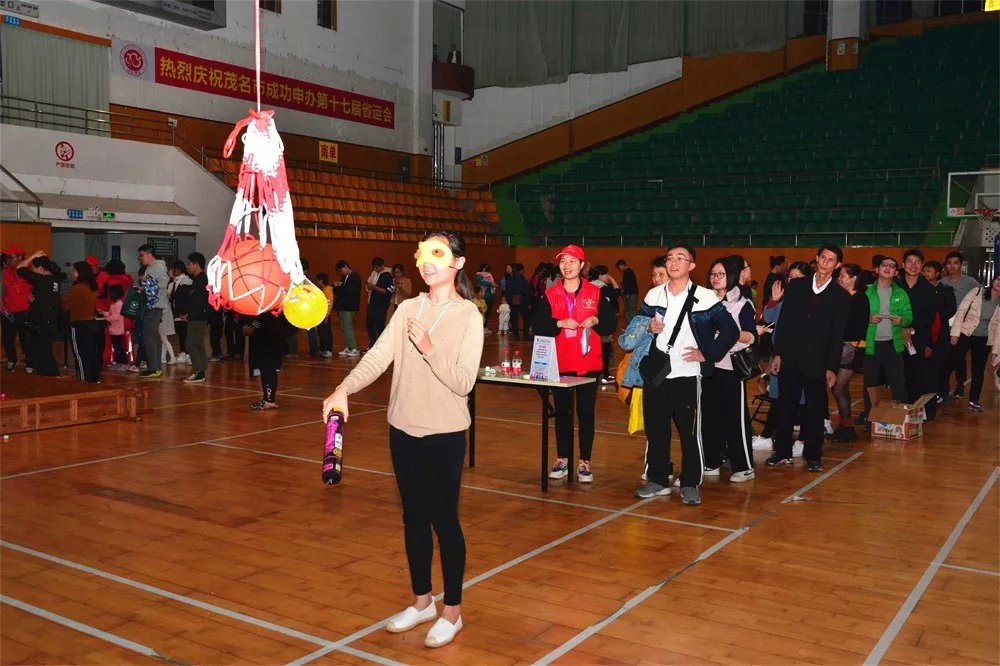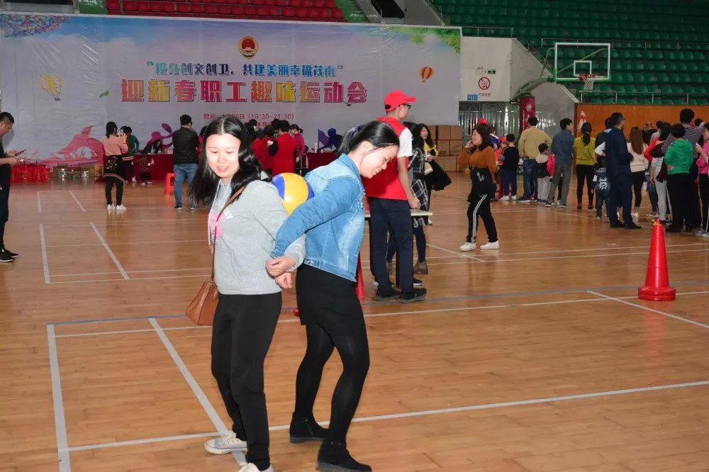 游戏规则:五人一组,参与者在腰上绑上抖乒乓球的道具。在规定时间内抖落所有的乒乓球。