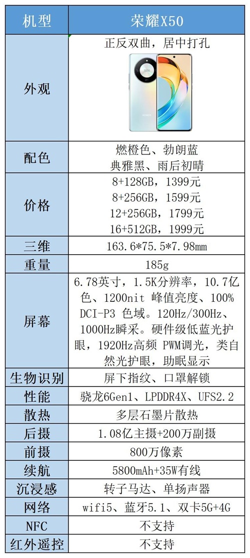 荣耀X50属于千元机中的爆款,整机轻薄时尚,同时配备了5800mAh的超大电池。屏幕素质优秀,分辨率达到了1.5K,无论是亮度还是护眼都不错,还支持十面抗摔。仅靠屏幕、续航、抗摔这几点,就足以令人动心了。