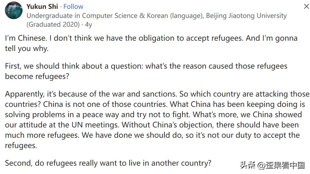 中国应该接收难民吗?这是一名外国网友在美版问答网提出的问题