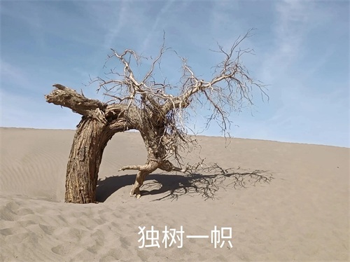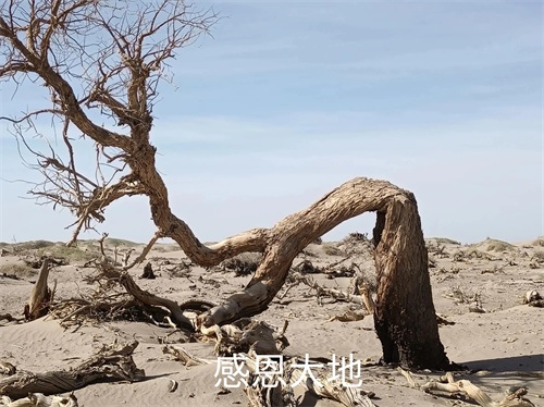 胡杨是一种奇特树种,生命力极强,具有耐腐特性,即使枯死的胡杨树干,依然直立在戈壁荒漠之上,形成形态怪异的悲壮景观。漫步在其中,又像置身一片雕塑园中,千奇百怪,神态万千,令人叹为观止。