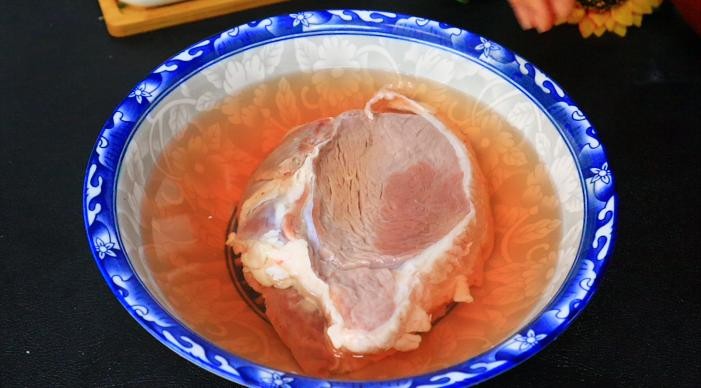 第一步、将新鲜牛肉浸泡30分钟,泡出里面的血水。