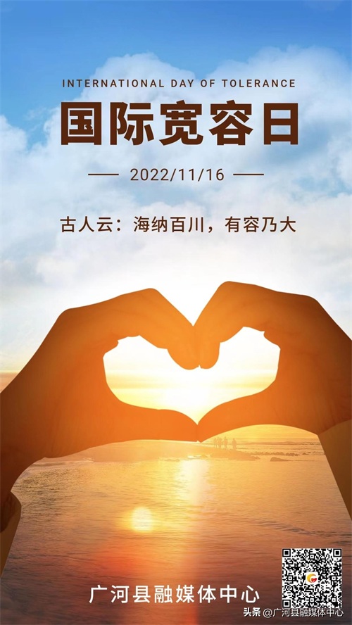 1995年,联合国大会通过了《宽容原则宣言》,并将每年的11月16号定为国际宽容日。宽容,是对世界中不同文化、不同的思想表达形式和不同的行为方式的尊重、接纳和欣赏。只有互相宽容,才能保证每一个文化社群在全球地区有尊严、平等和谐地生存。联合国教科文组织设立这个纪念日,是想提醒人们学会宽容,换位思考以及相互尊重。
