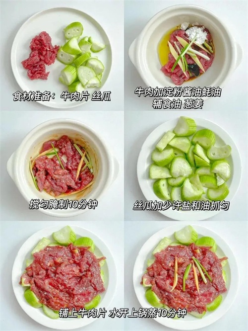 三、丝瓜蒸牛肉