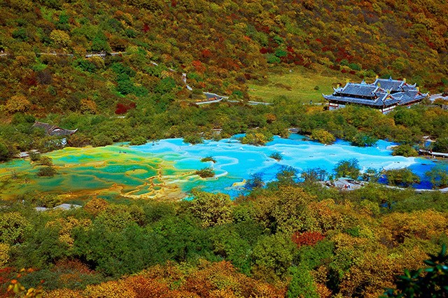 黄龙风景区是中国唯一保护完好的高原湿地,以丰富的动植物资源和规模宏大、结构奇巧、色彩丰艳的地表钙华景观为主景,以罕见的喀斯特地貌蜚声中外,堪称人间仙境。