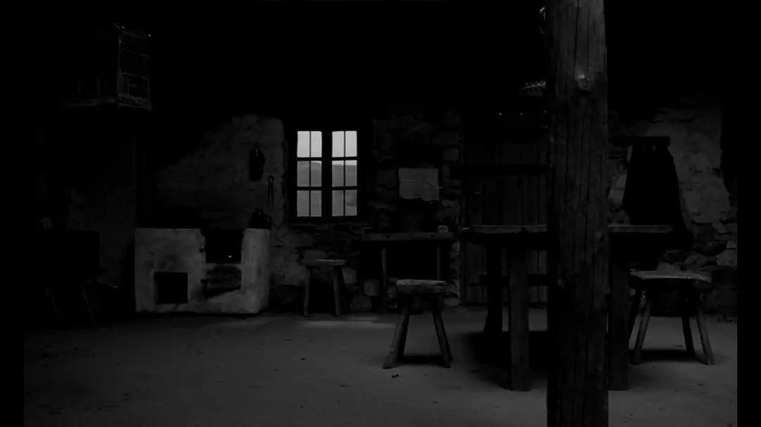 《都灵之马》中的摄影大多是静态的,很少有快速的剪辑或剧烈的摄影机运动。