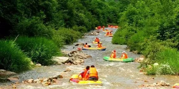 漂流河道周围原始风貌处处可见,空气清新,水流落差较大,是天然的漂流圣地。游客乘坐皮筏,一路乘风破浪,尽可体验“中流击水,浪遏飞舟”。时有急流险滩,时有平缓水面,刺激与惊险、浪漫与温馨并存。一路欣赏沿岸风光:急流缓滩,野花幽香,绿树成荫。景色怡人,空气新鲜,以绿色、健康、原始、自然的独特美丽,让你告别城市的喧闹,是休闲度假的绝好去处。
