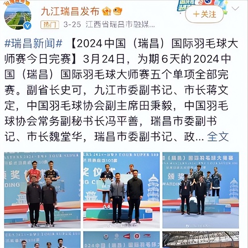 本文信源来自权威报道:【百度百科】【羽毛球杂志】【九江瑞昌发布】【央视网】(详细信源附在文章末尾)。为提升文章可读性,细节可能存在润色,请理智阅读,仅供参考!