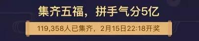 集齐五福的可以拼手气分5亿元红包。