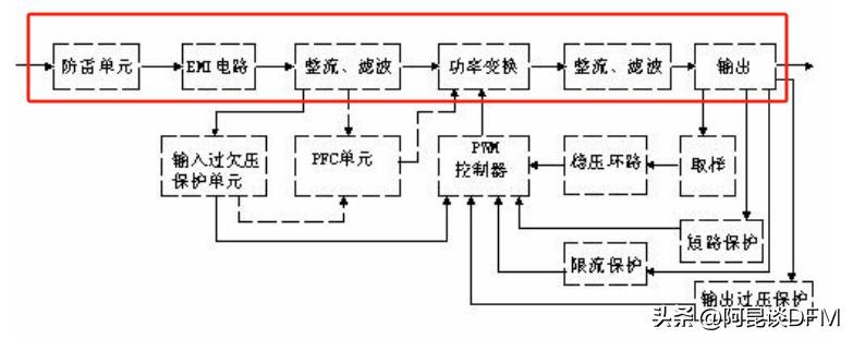 红色部分是一般常规AC-DC开关电源的主电路