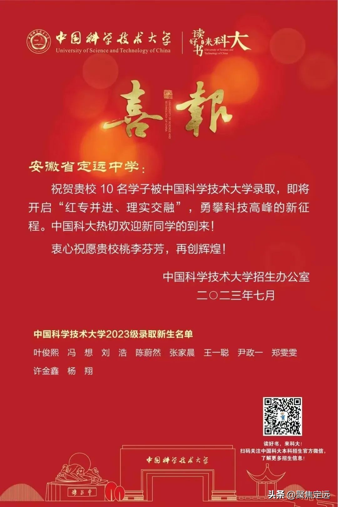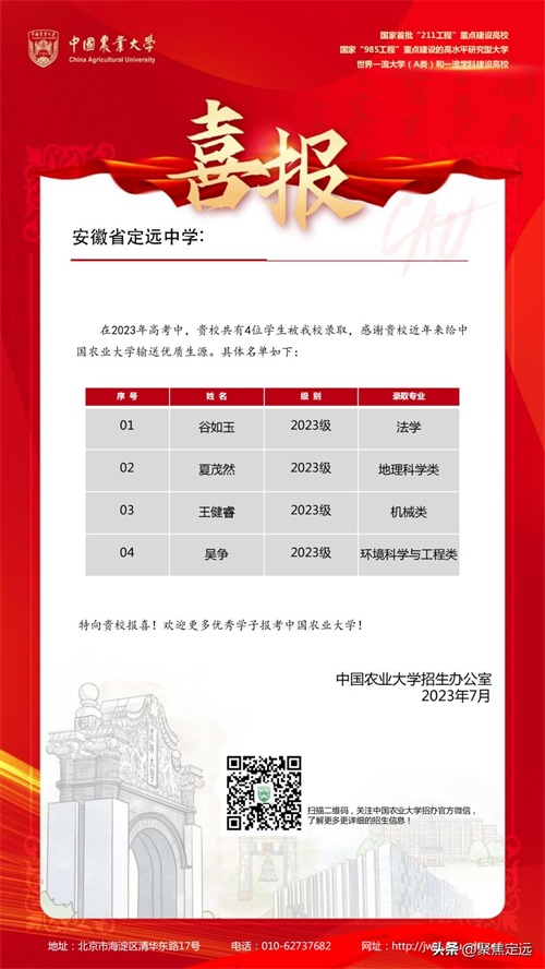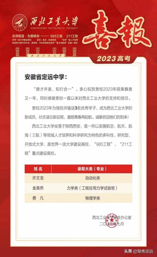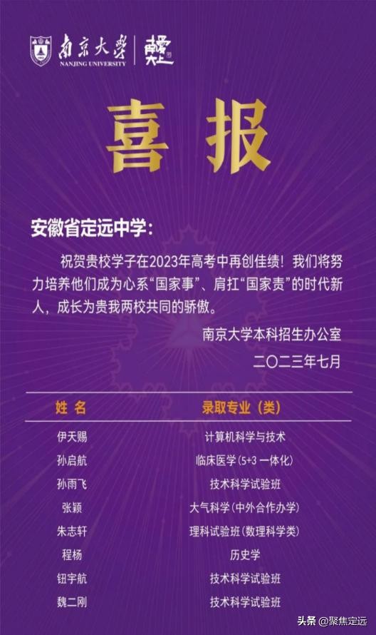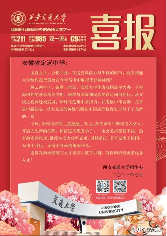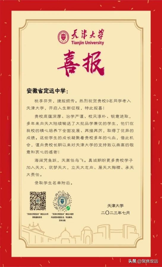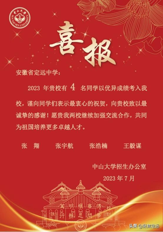 向定远中学发来录取喜报!