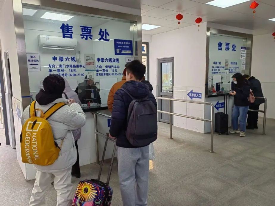 春节前,从早上开始,就有不少乘客提着大包小包进入五洲大道公交枢纽,乘坐前往长兴岛、崇明岛的申崇各线。