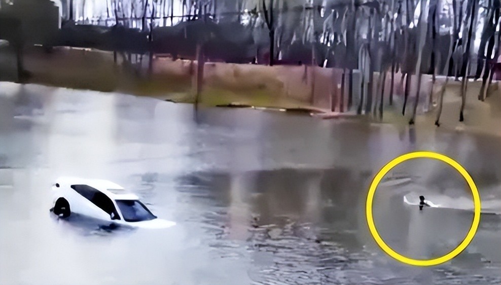 要知道在农村,会游泳的人并不多,大多数人只能眼睁睁地看着车辆逐渐下沉,也无能为力,随着时间悄悄流逝,车里的刘强夫妻俩慢慢感到无助,就在关键时刻,一个电动车骑手突然映入了大家的眼睛。