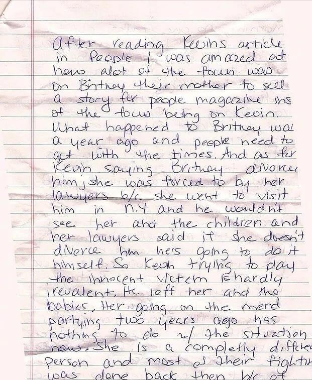 有人爆料一封布兰妮的手写信,信中暗示有人控制她,一年赚了100万。