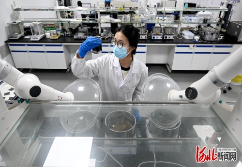 2024年7月24日,在天津工业大学沧州研究院内,来自天津工业大学的研究生在进行吸附材料制备实验。(河北日报资料片)河北日报记者 张昊摄