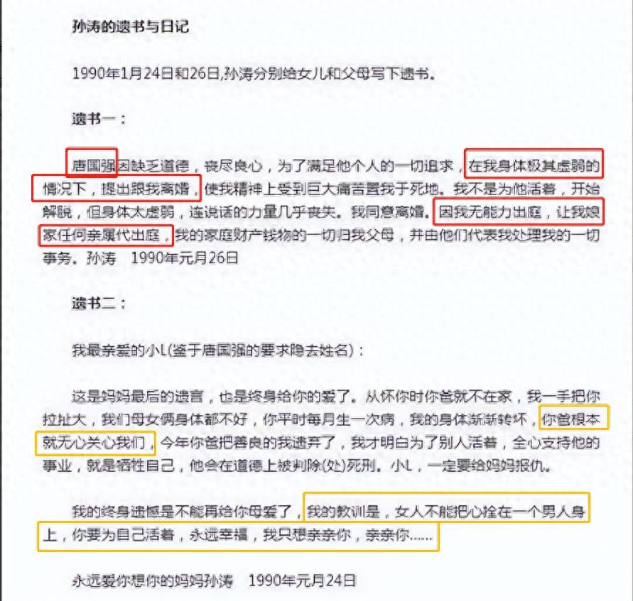 这是唐国强的前妻孙涛在遗书中留给女儿的最后一句话。