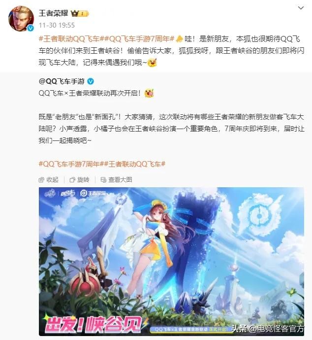 就在最近,王者荣耀和QQ飞车手游官方发布了联动预热海报,根据QQ飞车手游方面透露的消息,QQ飞车的“小橘子”会在王者峡谷中扮演一个“重要角色”。