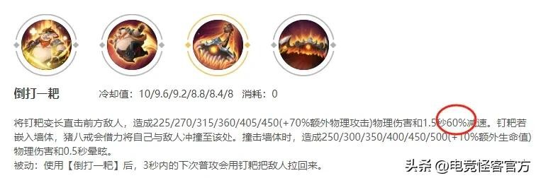 这里应该是官方的公告标错了,猪八戒二技能的减速效果应该是60%。