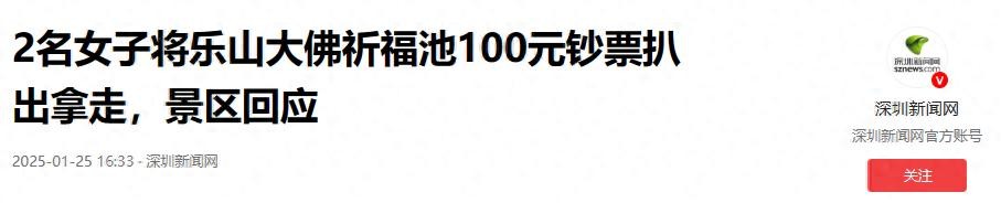 缺钱缺疯了?两女子“抢”乐山大佛祈福钱,便宜的不要专挑百元钞
