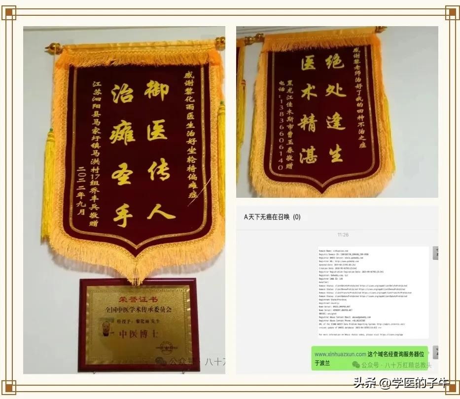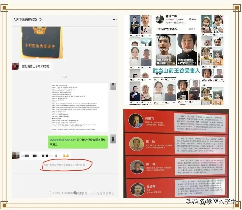 黎化雨构建了一套完整的造假体系,从资格证书到媒体背书环环相扣,形成迷惑性极强的诈骗系统。其宣称是中医师,经过子牛与宁乡市卫健局医政科核对得知,黎化雨并未取得执业医师资格,以前只是一个乡村医生,目前已经退了早已不能行医,现在行医就是非法行医了。