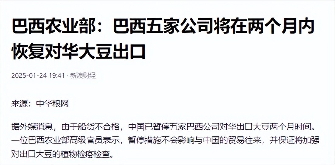 一、中国暂停部分巴西大豆进口引起关注