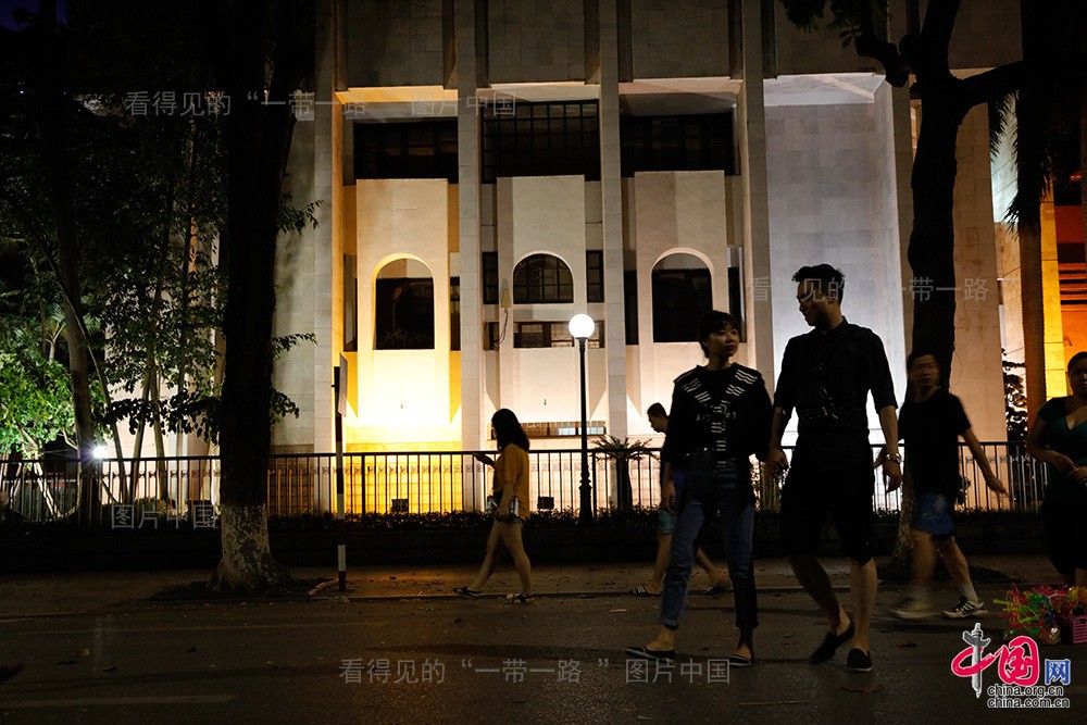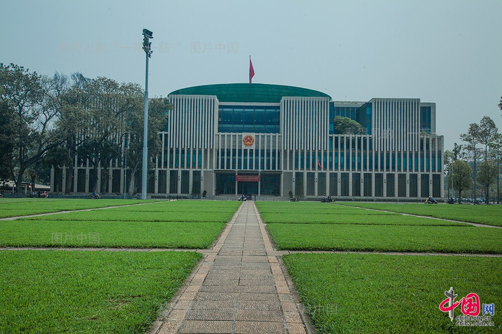 在胡志明纪念堂的对面,曾经的人民会堂原址之上,便是2014年新建成的越南国会大厦。在越南历史中,符号和隐喻深深扎根于传统之中,国会大厦的设计也尊重了这点并将其转化为建筑语言。这是一座外方内圆的多功能现代化大型建筑,契合天圆地方的概念,颇具现代化的风格也代表了一个崭新、蓬勃发展的越南形象。黄永锦 摄