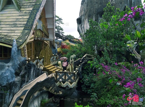 crazy house(疯屋子)的外形酷似一棵枯死腐烂的巨树, 由巨大的树洞进入其中,内里却是一间一间风格迥异的现代化客房。走入前庭花园,仿佛来到了森林梦境,各种铺天盖地、盘根错节的真假树木将几幢奇形怪状的建筑串联其中。环顾四周,艳红的三角梅、巨型的蜘蛛网、硕大的蘑菇林、幽深的老树洞……无一不让你想起童话故事里的情节,而这一切其实都是钢筋水泥筑起的。犹如被施展过魔法的crazy house,好像坠入了迷宫,在穿梭树洞中各种不规则的台阶时,绕着绕着又绕回了原点,让人乐此不彼。这里的灵感除了来源于西班牙艺术家及迪斯尼梦幻城堡外,还受到大叻四季宜人的自然环境所启发。黄永锦 摄