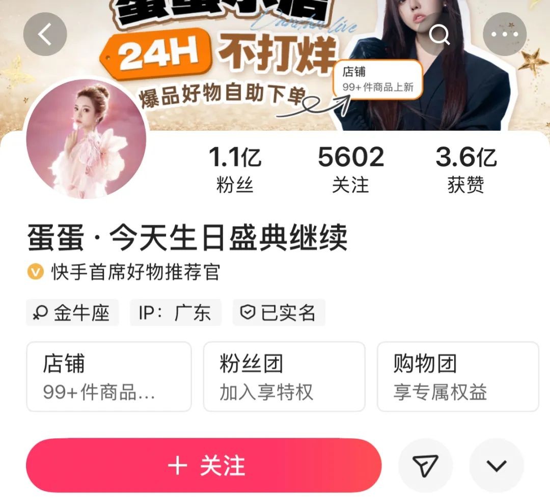 值得一提的是,她已经成为全网首个粉丝破亿的女主播。截至目前,蛋蛋在快手拥有1.1亿的粉丝。