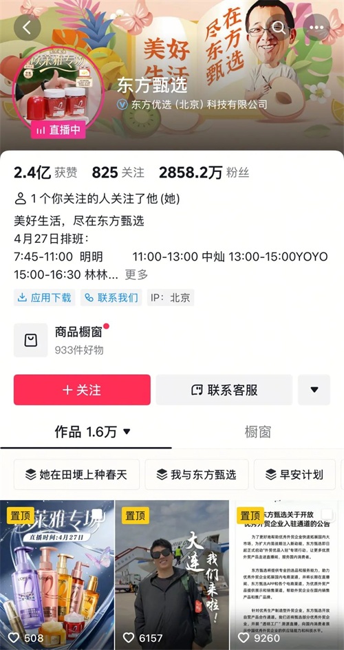 与辉同行、东方甄选账号图源:抖音