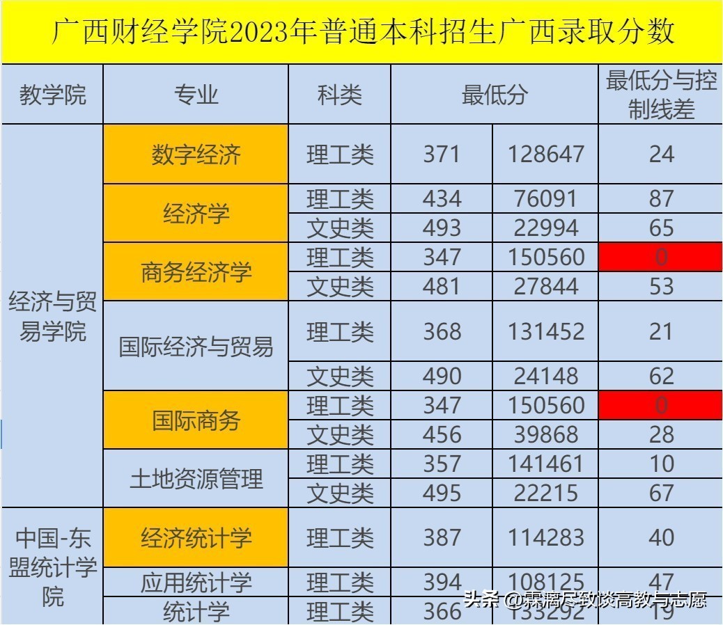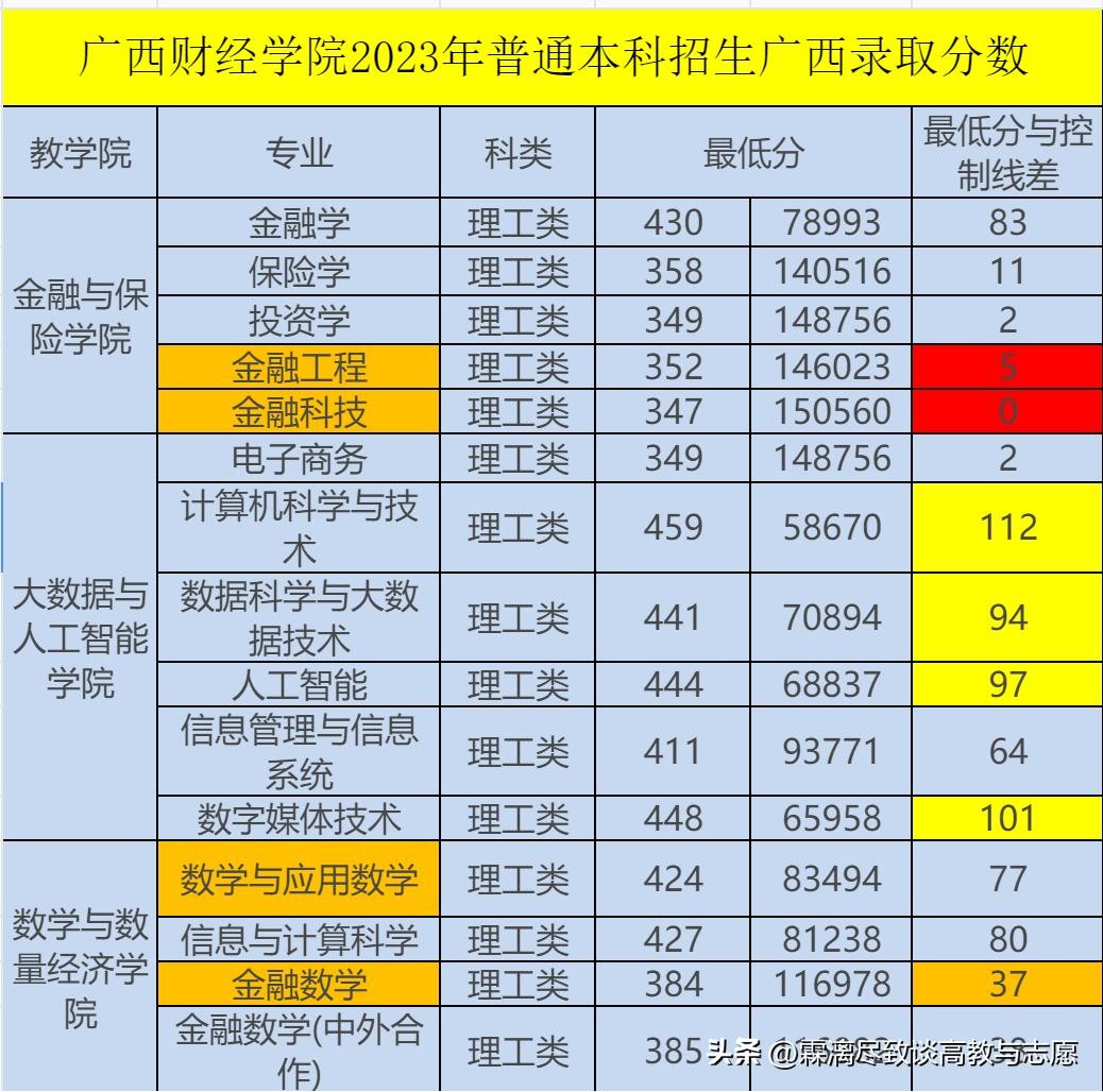 2023年广西理科的控制线是327,文科是428,下面我提到的专业最低录取分和控制线的分差就是以327和428作为基线的。