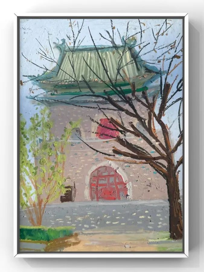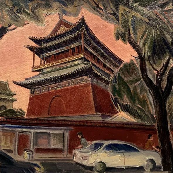 “在创作北京胡同场景和北京老建筑油画的过程中,我深深被这座城市的历史厚重感所吸引。每一笔都试图捕捉那些建筑的精髓,从鼓楼的金碧辉煌到胡同街景的灰墙黛瓦,每一处细节都诉说着过往的故事。”